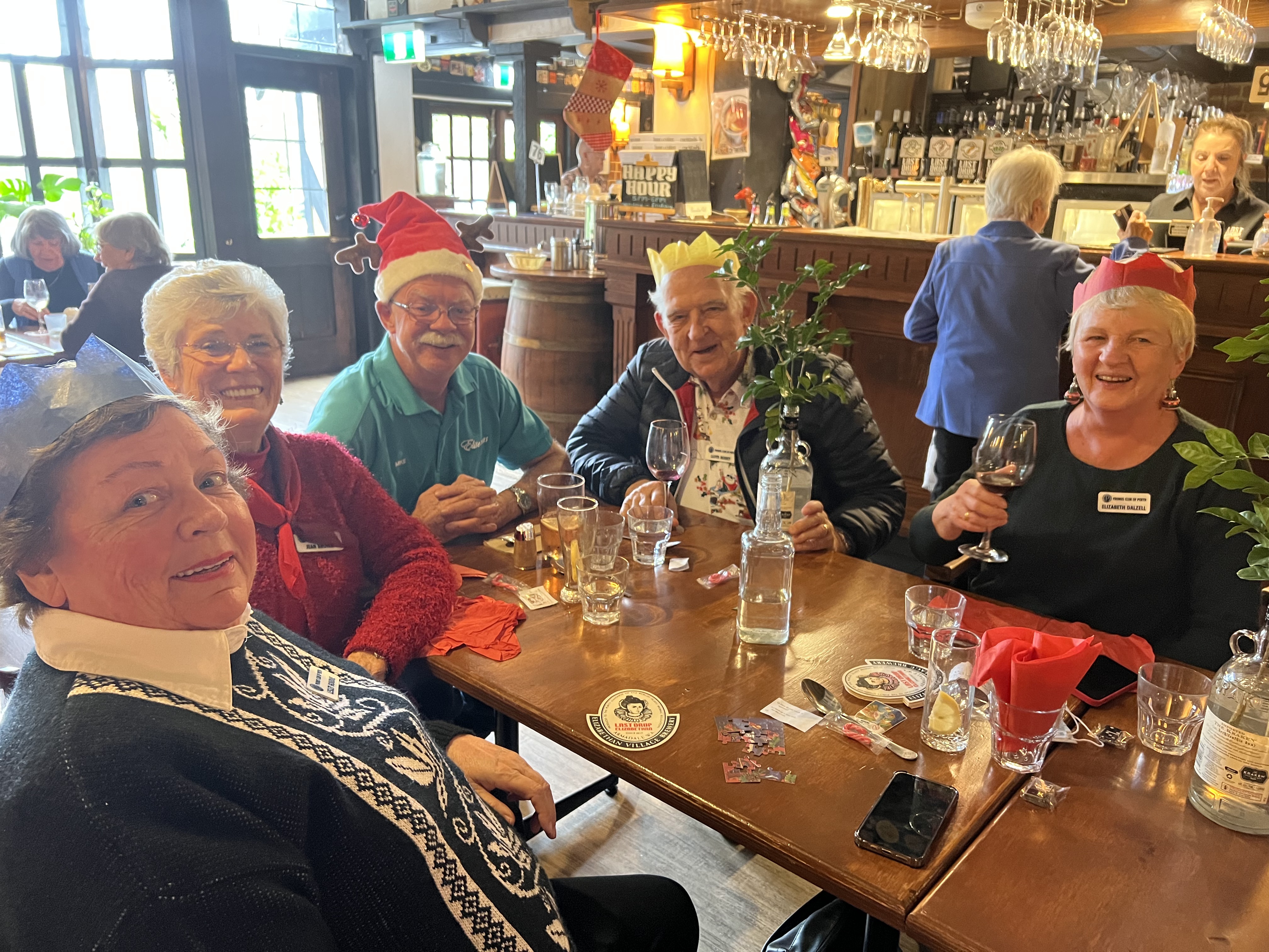 A dull rainy day. 40 people headed off on our outing. We journeyed to Kent St Weir where we enjoyed a lovely morning tea, cooked and supplied by Mike. From here we headed to Jadran Wines and left with the storage compartments under the coach considerably fuller than when we arrived. Lunch was at the Elizabethan Tavern where we enjoyed a traditional Christmas lunch with all the trimmings. During coffee Mark Rowntree warmed up the piano with a singalong. Unfortunately this had to be halted as we needed to board the coach for our trip back to Lake Karrinyup